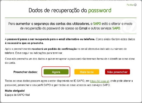 Assim, para que os actuais utilizadores do SAPO Mail possam no futuro recuperar a password, pedimos que adicionem os dados de recuperação da password.